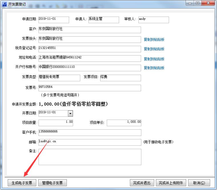 5、生成電子發票后,可以點擊【管理電子發票】查看和下載生成的電子發票PDF檔