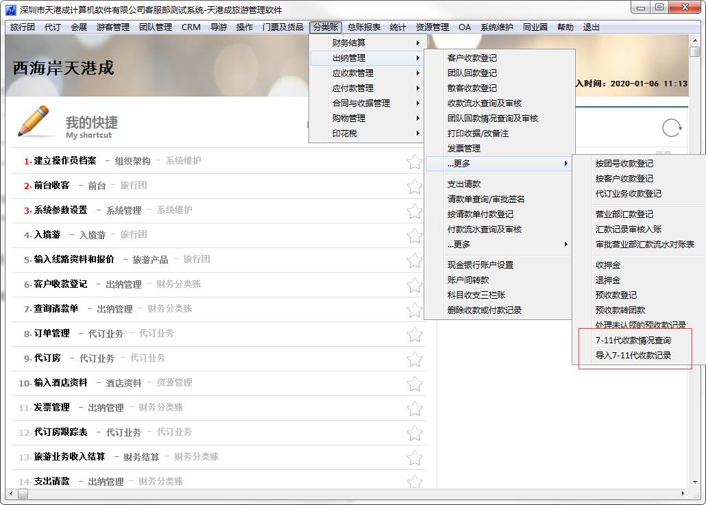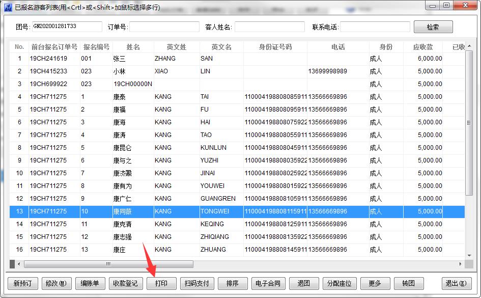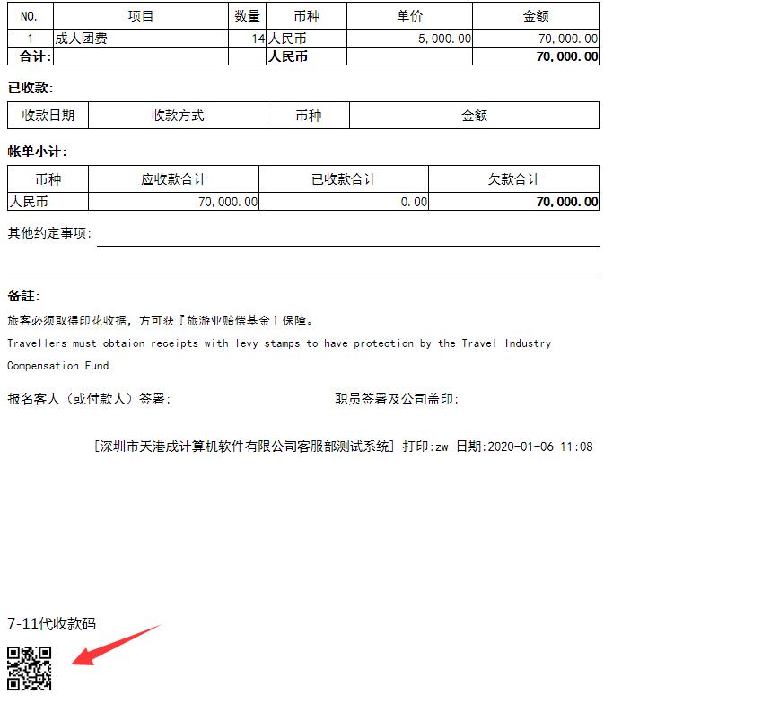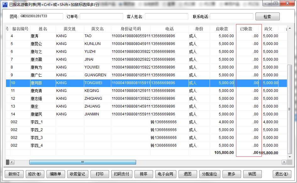 4.前臺(tái)已報(bào)名游客中會(huì)顯示該游客已收款的金額。